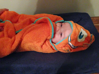 Landon is really beginning to build his palate, and we are now up to green beans, sweet potatoes, carrots and bananas. In the past week or so Landon has really seemed to enjoy eating his baby food. We have figured out however, he doesn't seem to like cold baby food. He much prefers it at room temperature. He's also become a creature of habit and if we don't get him his rice cereal or veggies within a 20 minute time frame, he is not scared to let you know he wants his food and he wants it now.